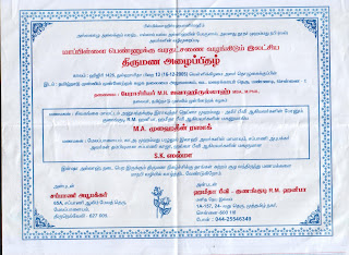 த.மு.மு.க. ஸ்தாபகர் குணங்குடி ஆர்.எம். ஹனீபா மகனார் மைதீன் ரஸாக் திருமண அழைப்பிதழ்.