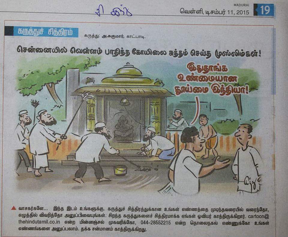 அது மட்டுமன்றி உண்மைகளை எழுத நிர்ப்பந்தித்த மழை. இவ்வளவு நிர்ப்பந்தத்திலும் அவர்கள் மனம் உண்மைகளை எழுத விடவில்லை. இஸ்லாமியப் பணி. இஸ்லாத்தின் அடிப்படையில் முஸ்லிம்கள் செய்த பணி. இப்படி உண்மைகளை எழுதினால் அது இஸ்லாத்திற்கு பெருமை சேர்த்து விடும். பொது மக்களின் மனம் இஸ்லாத்தின் பக்கம் ஈர்க்கப்பட்டு விடும். அதனால். மீடியாக்கள் அனைத்தும் மிக கவனமான வார்த்தைகளைக் கையாண்டன.